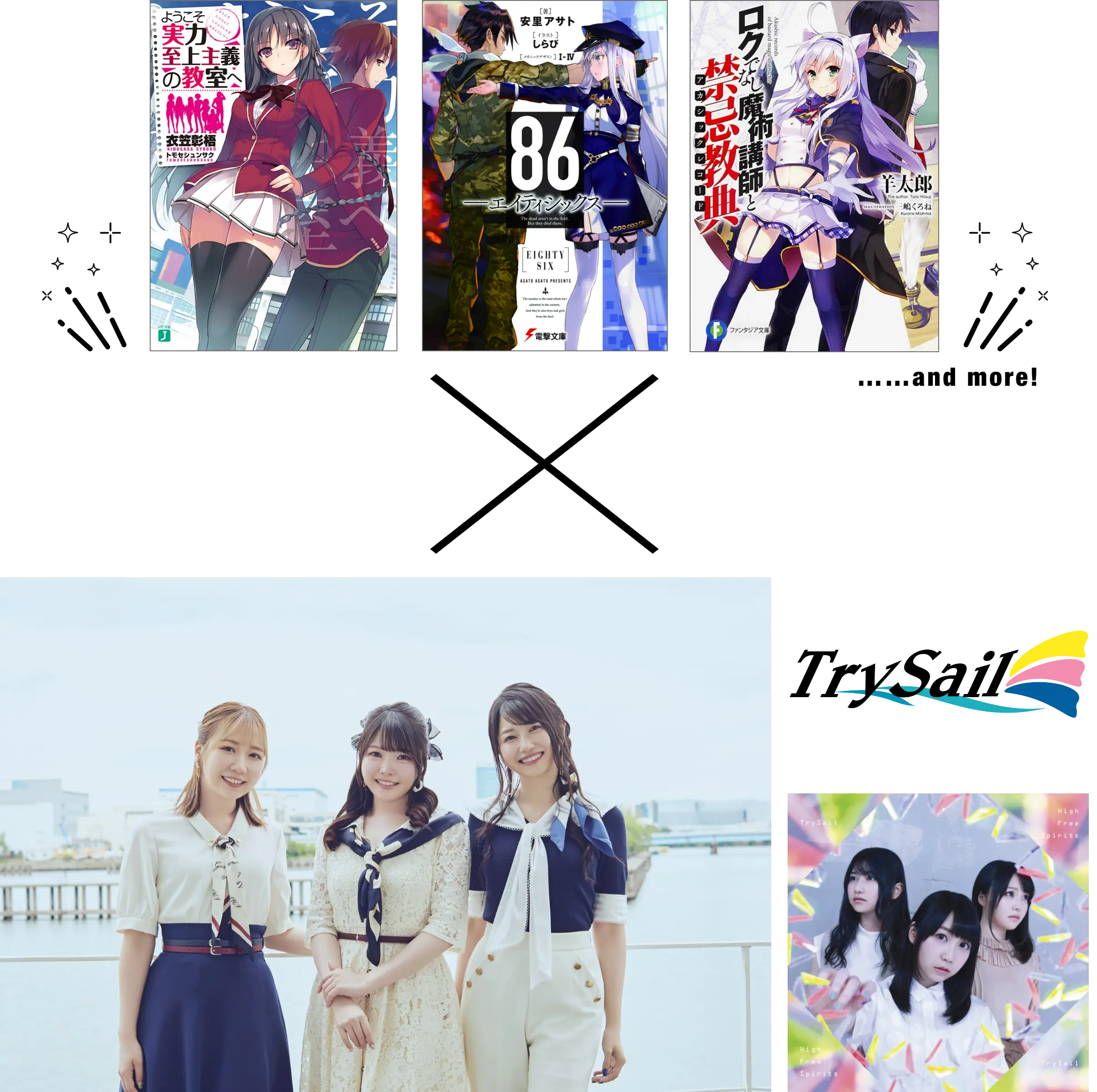 86―エイティシックス―/キミと僕の最後の戦場、あるいは世界が始まる聖戦/賢者の孫/終末なにしてますか? 忙しいですか? 救ってもらっていいですか?/スーパーカブ/ストライク・ザ・ブラッド/探偵はもう、死んでいる。/魔法科高校の劣等生/ようこそ実力至上主義の教室へ/ロクでなし魔術講師と禁忌教典